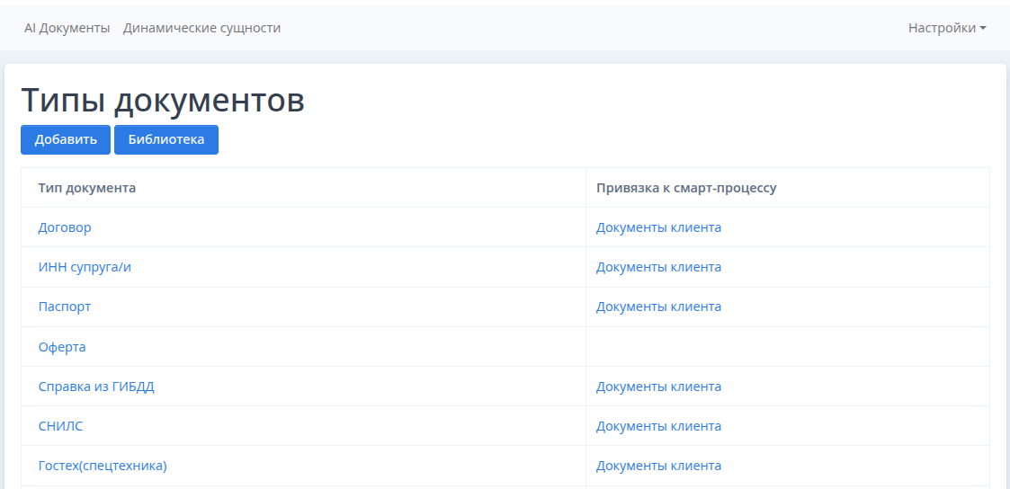 Настройки AI Документы