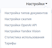 Для работы с приложением «AI для извлечения данных из документов в Битрикс24» доступны настройки:
