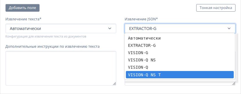Данная настройка рекомендуется для специалистов, знающих тонкости настроек промтов для искусственного интеллекта, которые позволяют выполнить более сложную выборку из многостраничных документов или документов в специфических форматах.