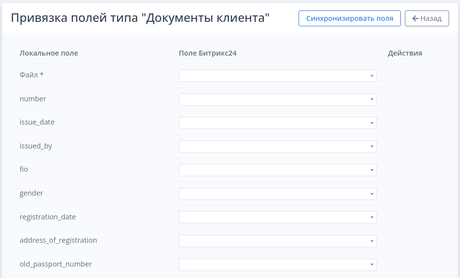 - Выполните привязку полей смарт-процесса к полям CRM Битрикс24