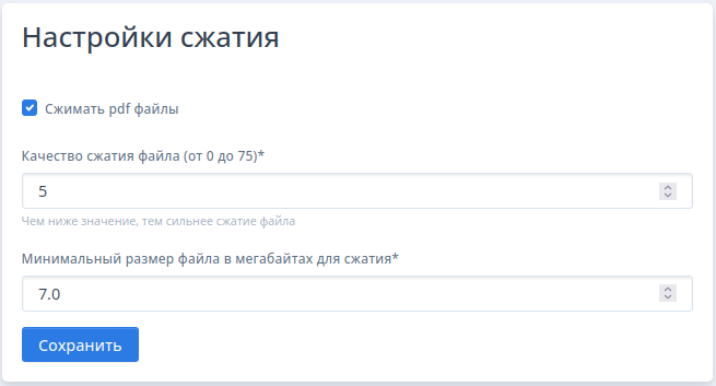 - Установите признак Сжимать pdf файлы для более компактного хранения документов