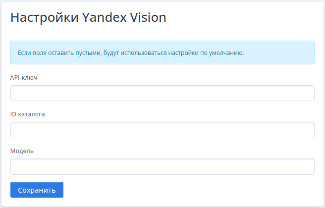 Настройки Yandex Vision¶