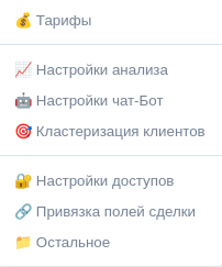 - Из рабочего окна Кластеризации клиентов нажать на кнопку Настройки